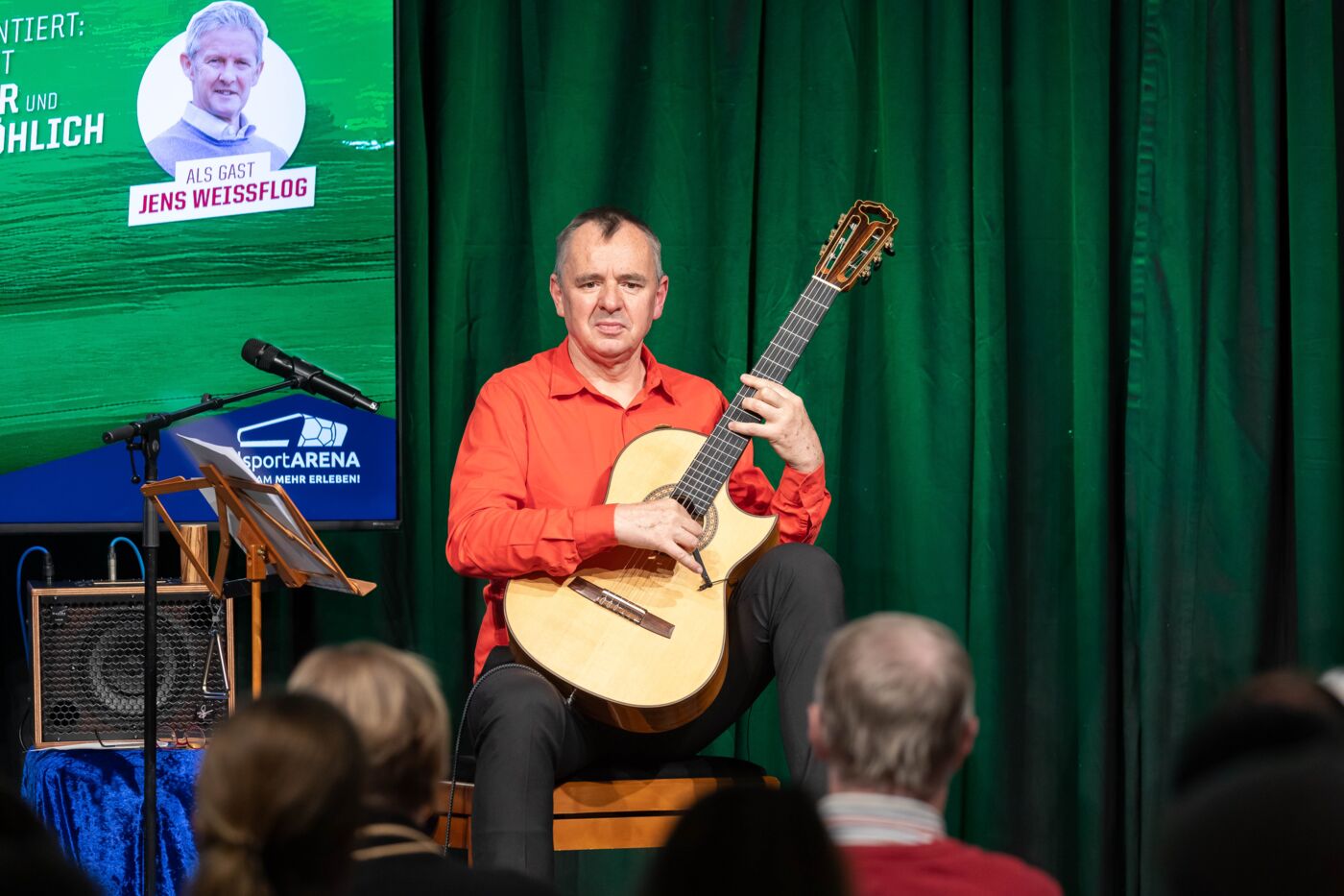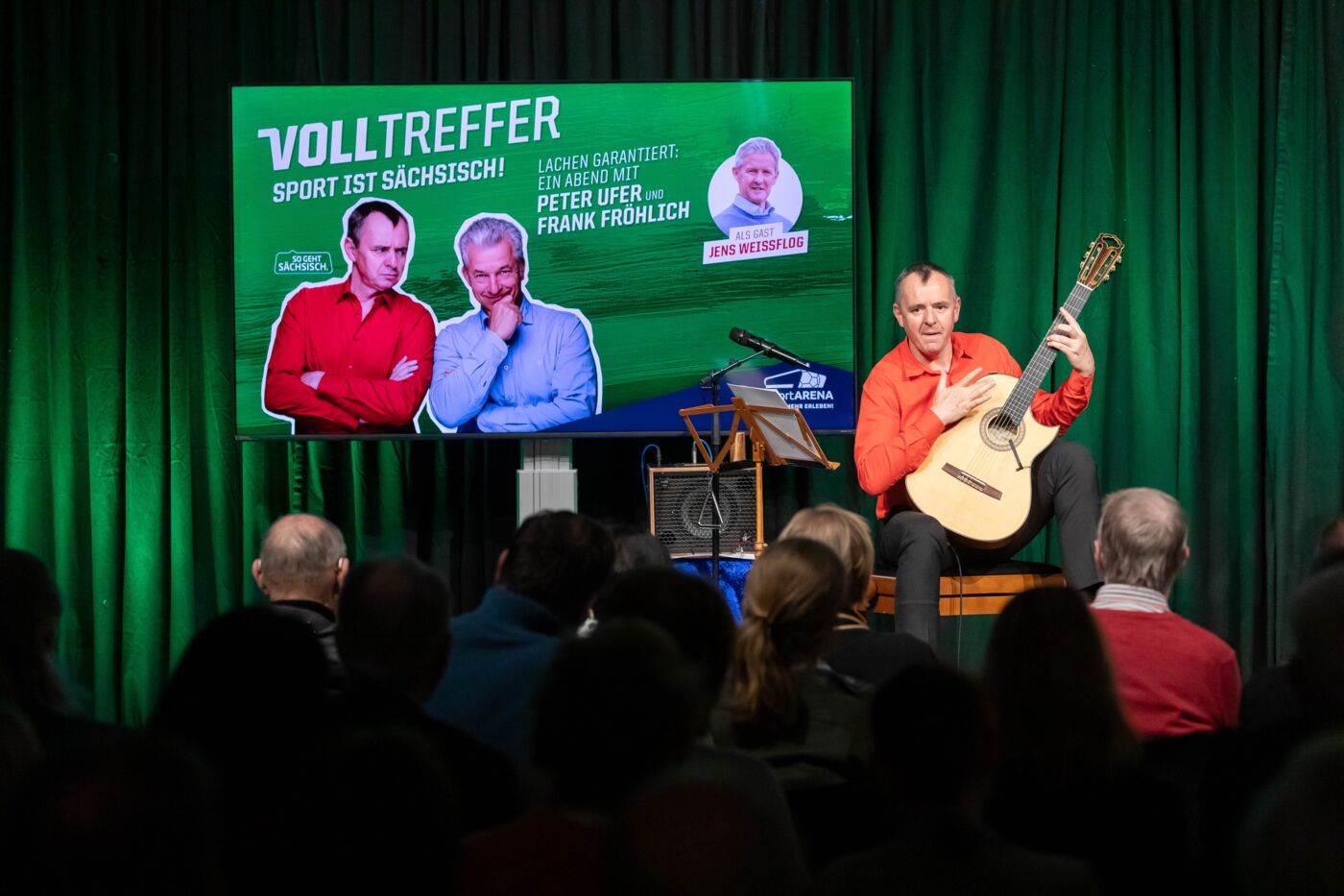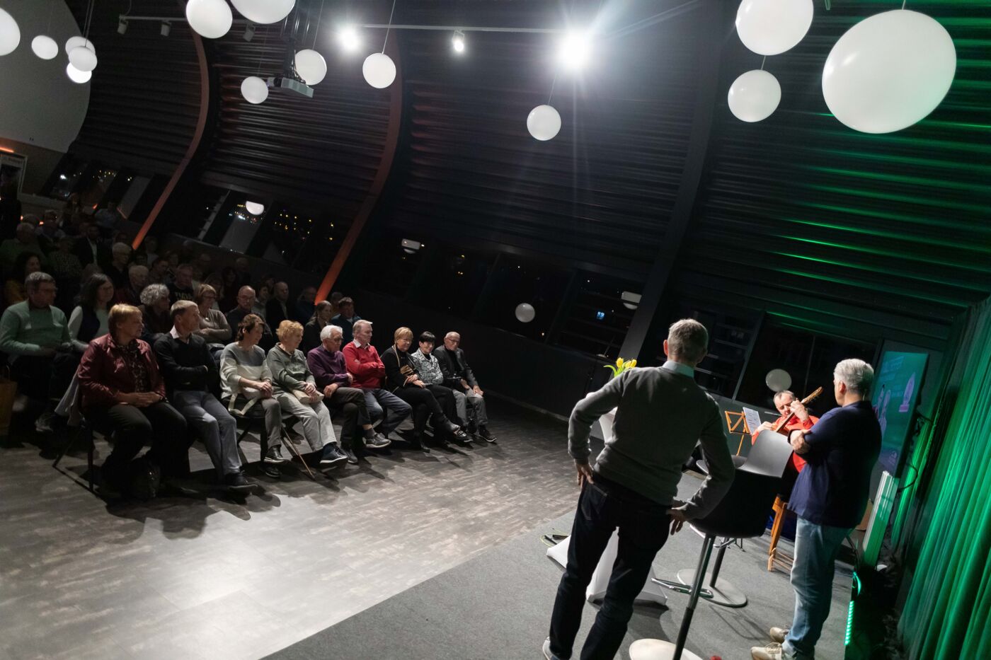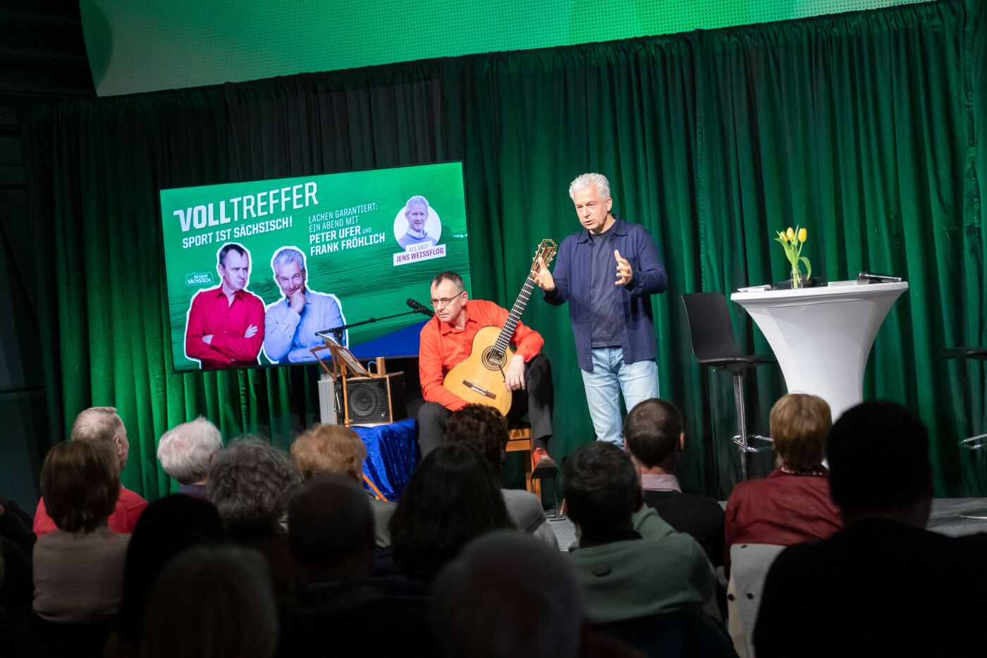 Moderator Peter Ufer führte gemeinsam mit Musiker Frank Fröhlich durch ein unterhaltsames Programm, das irgendwo zwischen Talk, Lesung und Musik angesiedelt war – und dabei vor allem eines schaffte: Nähe.