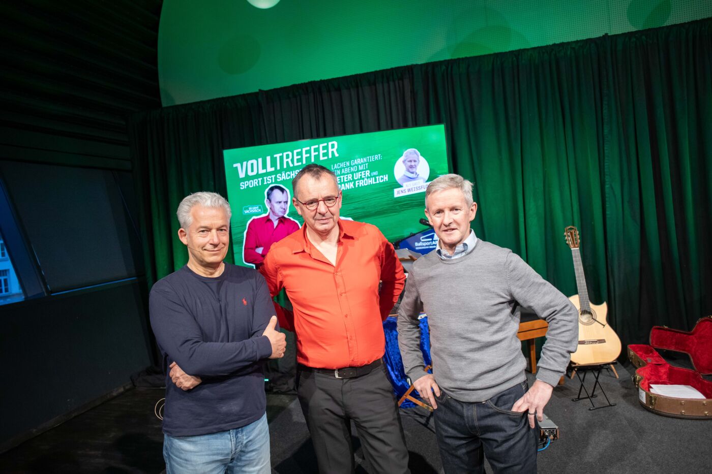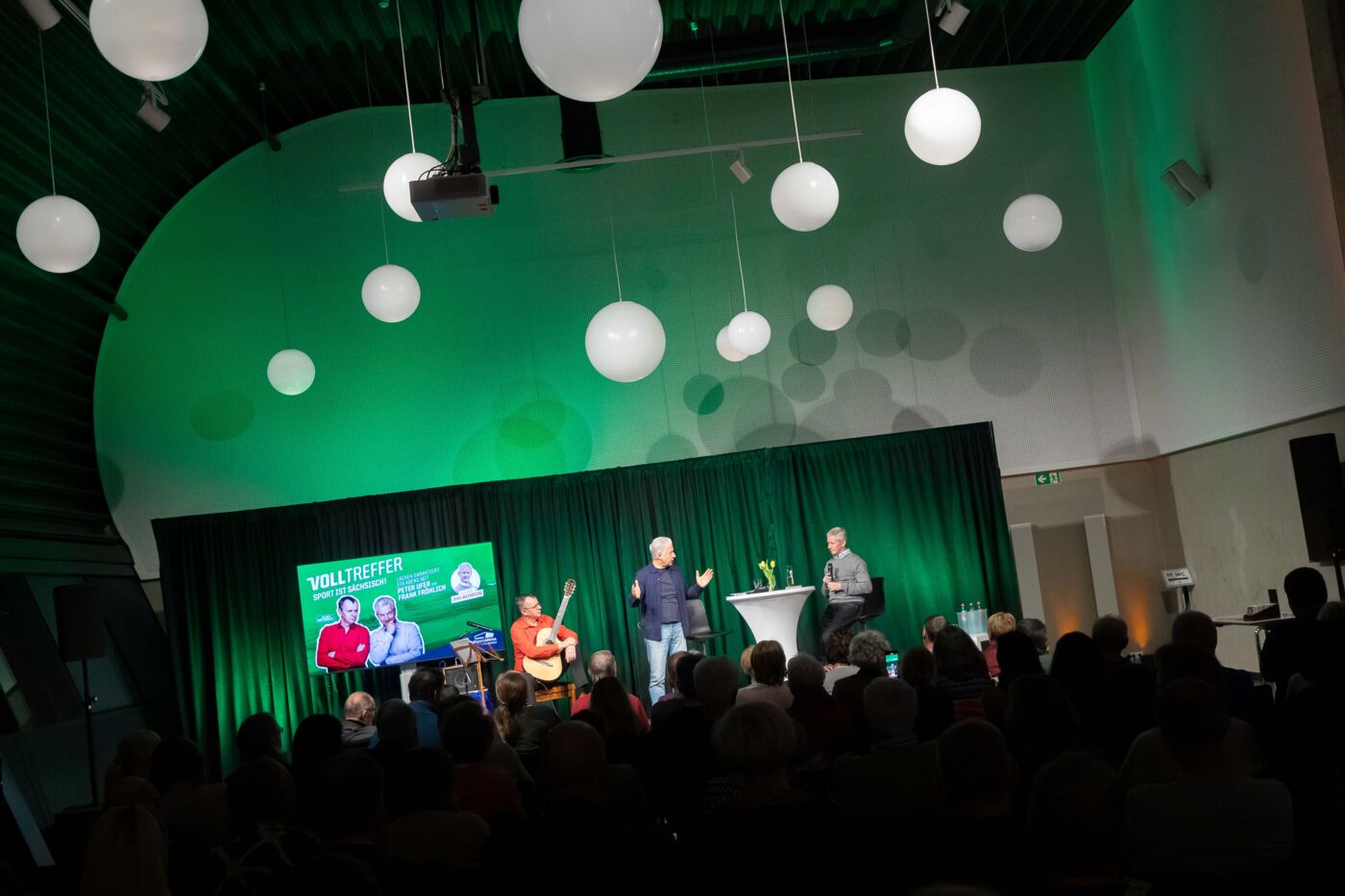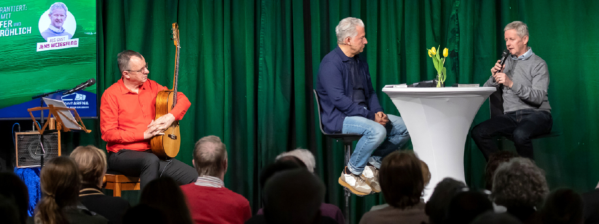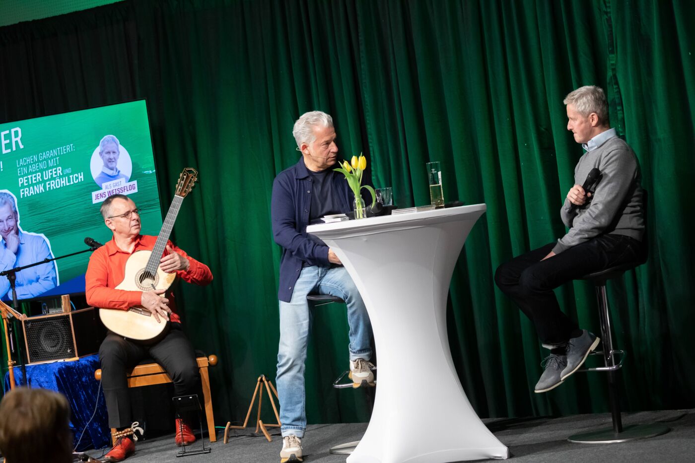 Moderator Peter Ufer führte gemeinsam mit Musiker Frank Fröhlich durch ein unterhaltsames Programm, das irgendwo zwischen Talk, Lesung und Musik angesiedelt war – und dabei vor allem eines schaffte: Nähe.